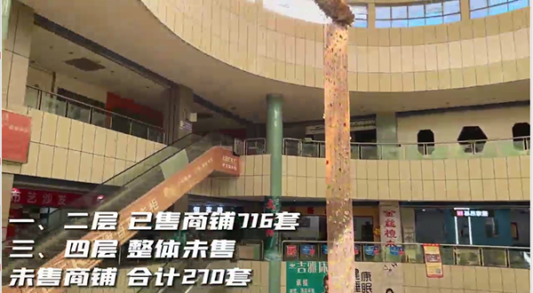 地上二层:共730个产权商铺,建筑面积12,501.34平方米。现以产权商铺形式已出售652个(产权期限为40年),建筑面积10,914.18平方米。未出售的商铺78个,建筑面积1,587.16平方米。现整体由业主自行运营家具城。