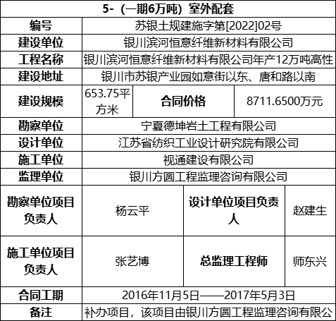 3.5 2022年2月24日,银川恒意取得(一期6万吨)室外配套的《建筑工程施工许可证》,具体信息如下: