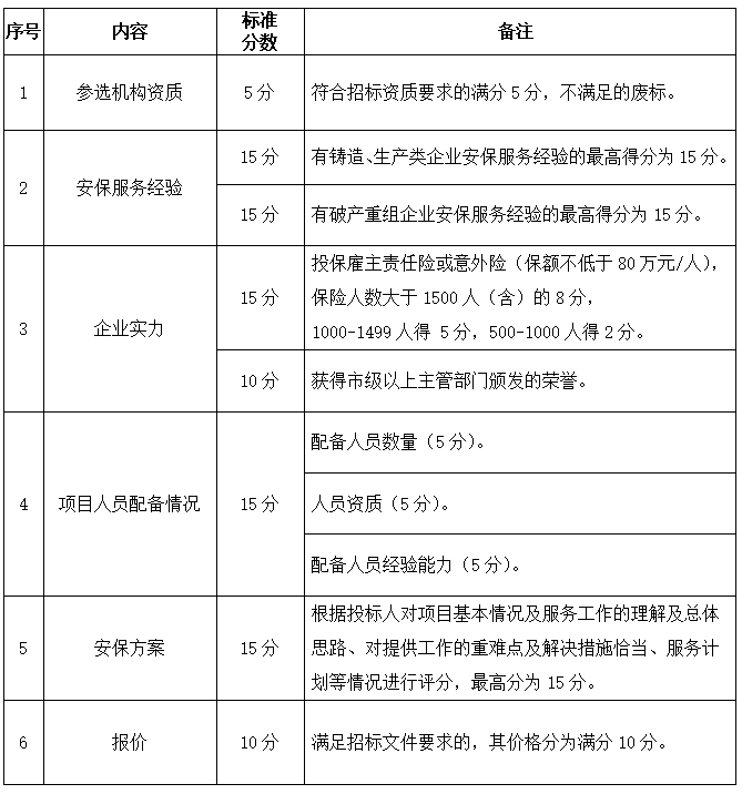 济南慧成铸造有限公司、山东锦尔泰精密压铸有限公司合并重整案公开选聘安保机构安保机构评分标准