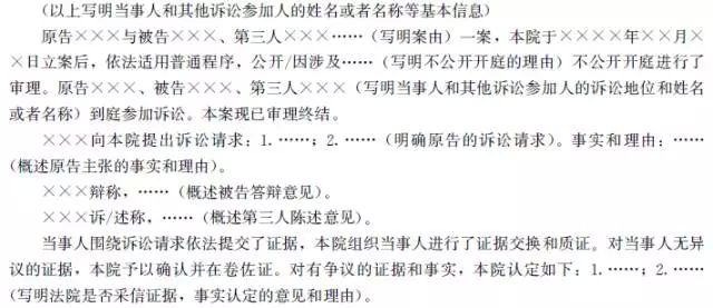 11.认定事实的书写方式应根据案件的具体情况,层次清楚,重点突出,繁简得当,避免遗漏与当事人争议有关的事实。一般按时间先后顺序叙述,或者对法律关系或请求权认定相关的事实着重叙述,对其他事实则可归纳、概括叙述。