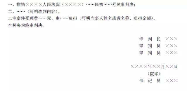 5.对依法可以上诉的一审判决,在尾部表述为:“如不服本判决,可以在判决书送达之日起十五日内,向本院递交上诉状,并按对方当事人的人数或者代表人的人数提出副本,上诉于××××人民法院。”