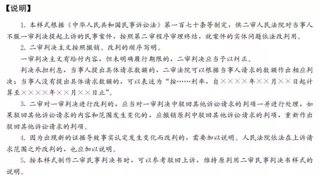 4.一审判决中具有金钱给付义务的,应当在所有判项之后另起一行写明:“如果未按本判决指定的期间履行给付金钱义务,应当依照《中华人民共和国民事诉讼法》第二百五十三条的规定,加倍支付迟延履行期间的债务利息。”二审判决具有金钱给付义务的,属于二审改判的,无论一审判决是否写入了上述告知内容,均应在所有判项之后另起一行写明上述告知内容。二审维持原判的判决,如果一审判决已经写明上述告知内容,可不再重复告知。